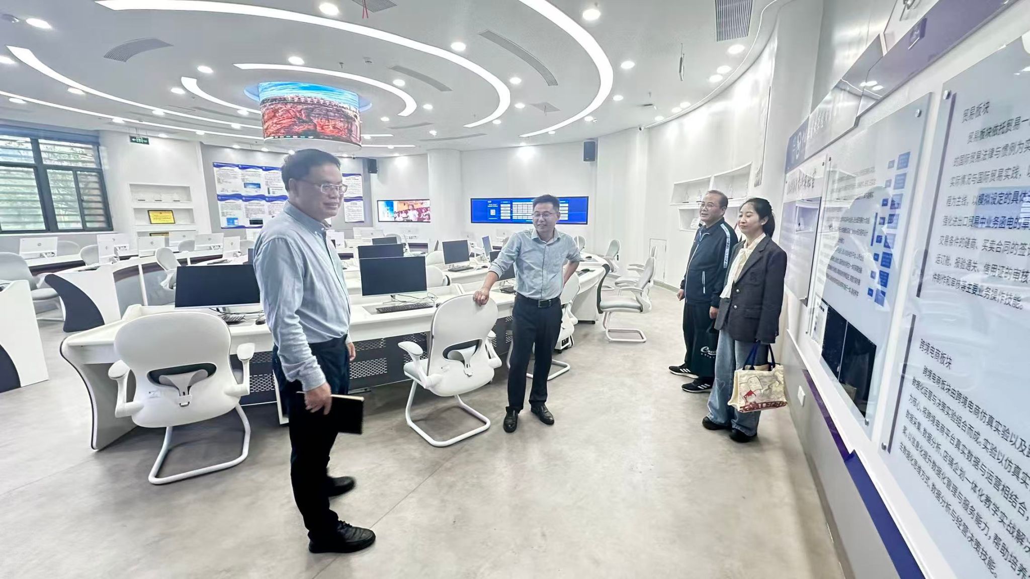 会前,於世为院长陪同客人参观了学院实验室、档案室、智慧教室及文化长廊,并合影留念。此次交流座谈为两校经管学科进一步加强合作、互学互鉴、协同提升奠定了良好基础。