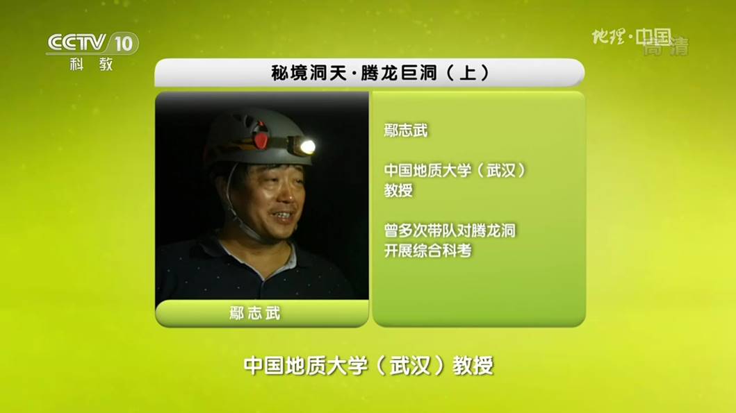 2019年3月24日和25日,以地学旅游资源利川腾龙洞科考探秘为内容的科普节目《秘境洞天Ÿ腾龙巨洞》 (上、下)在央视科教频道CCTV-10《地理中国》栏目播出,我院旅游管理系鄢志武教授在节目中出镜担任专家解说。以地质科考为线索,以普及地理学知识为宗旨,鄢志武教授在解说中带领观众一起认识了这一中国容积量最大、世界特级洞穴的奇特地质构造和千奇百怪的地学景观,在带着观众感受大自然神奇魅力的同时,传播科学知识,并传播人与自然和谐共生、相互依存的理念。