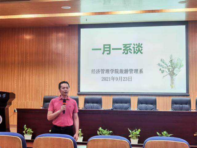 9月23日下午2点,旅游管理系在未来城校区伟德国际victor·1946源自一楼报告厅举行了“一月一系谈”活动暨085191班的暑期北戴河旅游教学实习总结会。本次活动到场人员有旅游管理系肖拥军主任、李会琴老师、黄珂老师、辅导员赵家玮及085191班全体同学。
