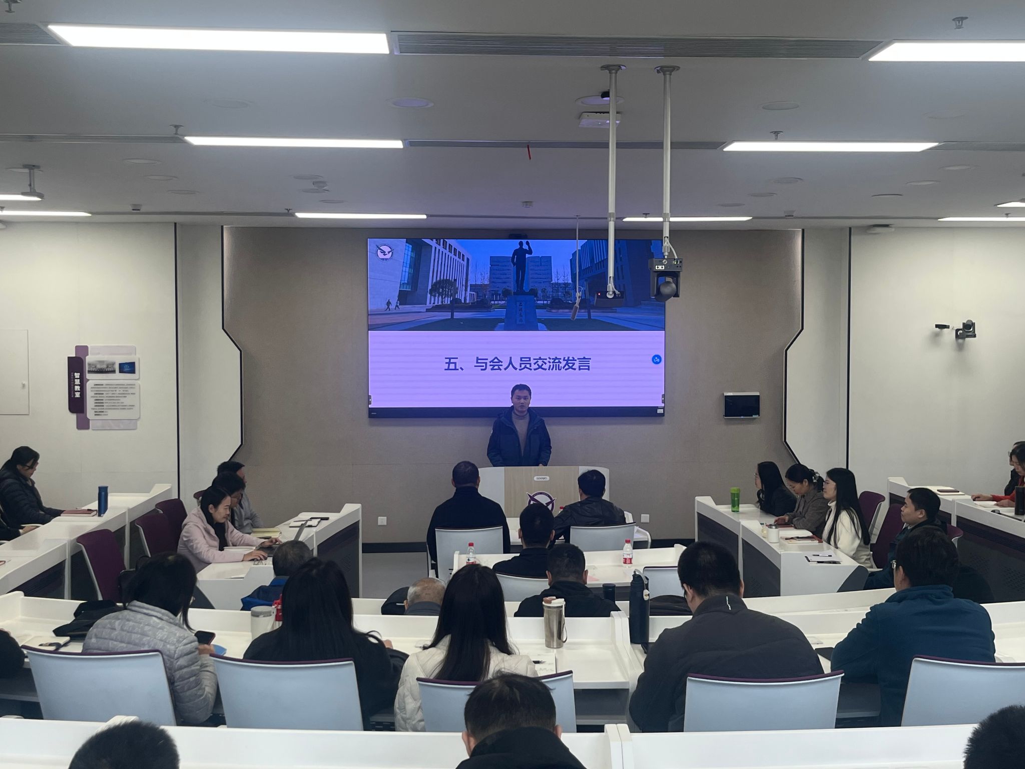 学校2024年度“十佳班主任”、084222班班主任赵文举老师分享了工作经验。他结合自身工作实践,讲述如何与学生做朋友,如何帮助困难学生,如何通过促进学风建设凝聚优秀班集体力量等,通过具体案例生动展现了班主任工作的责任与温度。赵文举老师的经验做法为在场班主任提供了可借鉴、可推广的实践路径,引来现场热烈掌声。