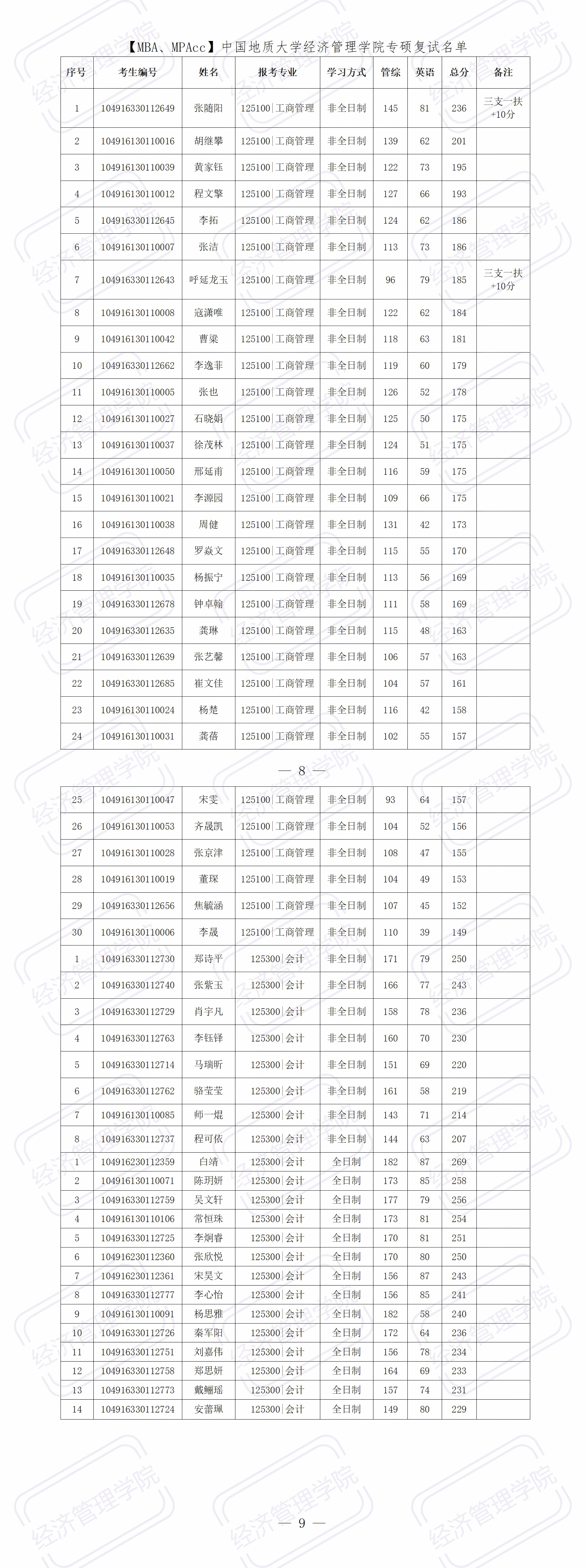 一、【MBA、MPAcc】中国地质大学伟德国际victor·1946源自专硕复试名单